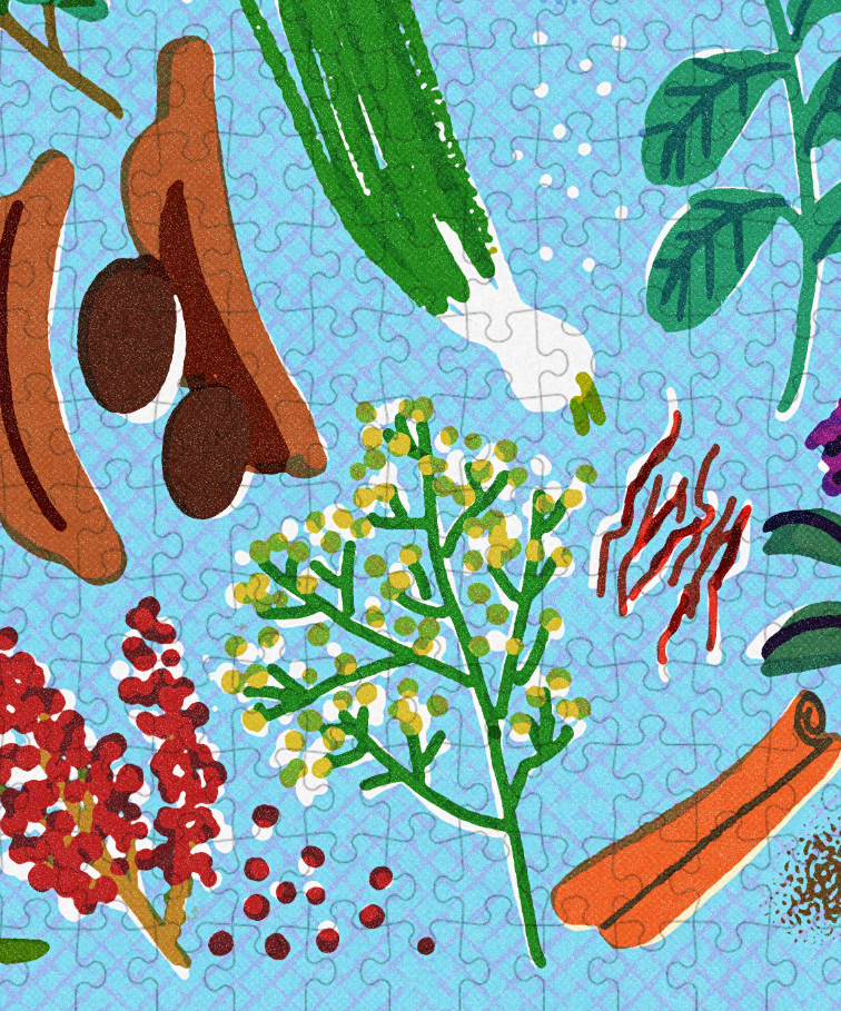 Cloudberries, a British puzzle company, reached out to me after seing my "spices & herbs" illustration for They draw website. They asked me to improve it by adding more elements, in order to have a big enough pattern for a 1000 pieces puzzle.