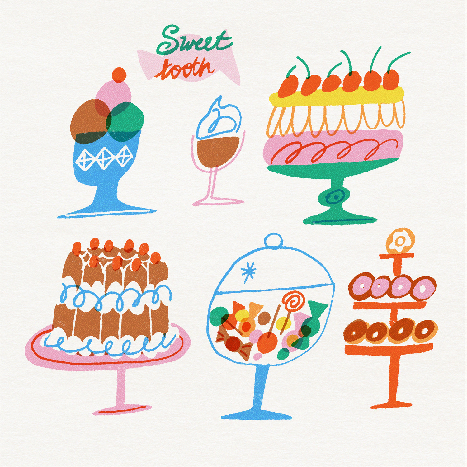 Retro style illustration of a set of desserts